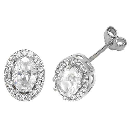9Ct White Gold Cz Oval Halo Studs - ES475W